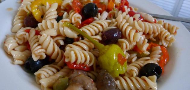 سلطة المعكرونة بالزيتون الأسود والباذنجان